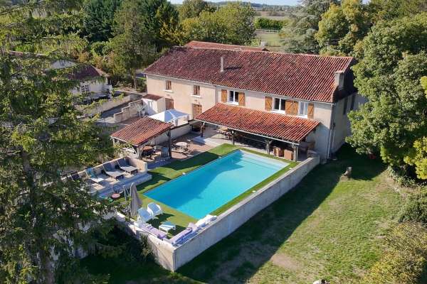 Le gîte Turquoise classé 3 étoiles est située en Sud Charente à la frontière de la Dordogne non loin du village classé d'Aubeterre sur Dronne. Vous y trouverez un court de tennis, un espace jeux (Billard, Baby Foot, Fléchettes) et un espace extérieur (cages de foot, ping pong, balançoires, trampoline, cabane) et une salle de sport. La piscine (5x10m) est partagée avec le gîte Orangers. L'intérieur de la maison Turquoise se compose d'une pièce à vivre (cuisine, salon) d'une terrasse extérieure couverte, d'un grand espace pelouse autour de la piscine. A l'étage vous trouverez 2 chambres et une salle de bain avec douche.