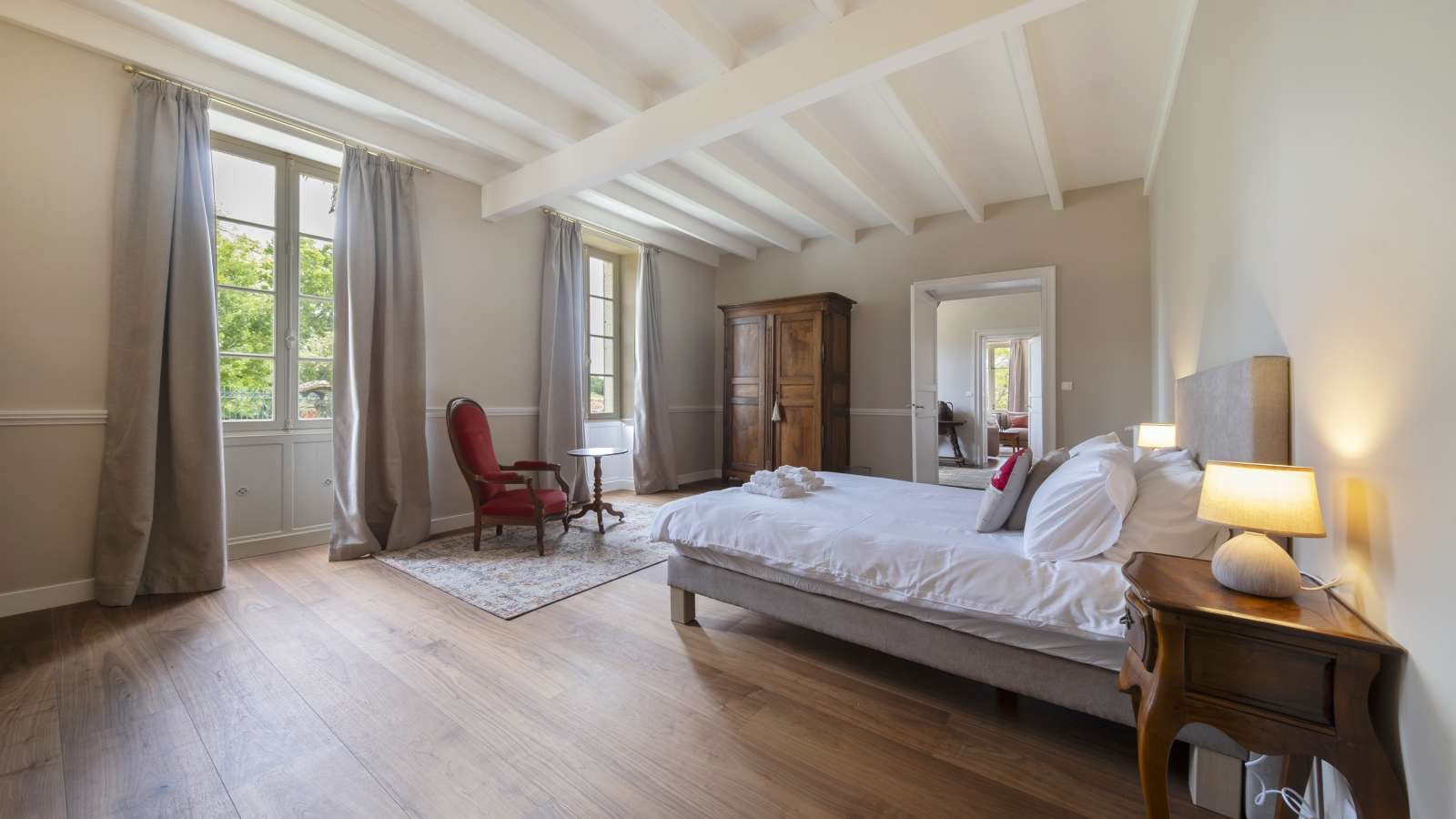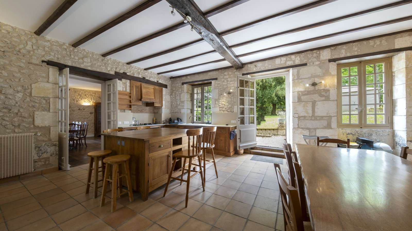 Une magnifique maison de maître spacieuse avec 5 chambres et 5 salles de bains. Au rez-de-chaussée, un somptueux salon et une salle à manger avec une immense cuisine, une buanderie et un cellier. À l'extérieur, un grand jardin clos et 2 piscines chauffée Idéal pour les mariages, les célébrations telles que les anniversaires, Noël et le Nouvel An, ou simplement pour passer des vacances luxueuses entre amis ou en famille. Évadez-vous dans la campagne française et séjournez au manoir Langlade, imprégné d'histoire et de traditions locales. En 2024, les 5 chambres ont été rénovées et réaménagées selon des normes très élevées. 5 salles de bains spacieuses et luxueuses ont été créées, dont une avec baignoire. Le salon est doté de somptueux canapés et fauteuils qui invitent à la détente totale, tandis que la salle à manger chic est parfaite pour les repas raffinés. Le véritable cœur du Manoir est la grande cuisine, si spacieuse que l'on s'y perdrait presque. Imaginez toutes les histoires que cette grande cuisine pourrait raconter. Le domaine Langlade comprend 4 maisons, dont le Manoir. Il se dresse fièrement au milieu du domaine avec son fantastique jardin clos et ses 2 piscines chauffées de 10 x 5 mètres clôturées, ce qui signifie que vous partagez la piscine avec les autres clients. Il arrivera parfois que vous ayez la piscine pour vous seul si aucun autre client n'est présent. Commerces / magasins les plus proches : Montmoreau St Cybard - 8 min en voiture (8,5 km). Chalais - 9 min en voiture (8,8 km) Montboyer - 3 min en voiture (1,6 km) - boulangerie bio et restaurant local. Gare de train la plus proche : Chalais. Gare TGV la plus proche : Angoulême. Informations historiques intéressantes : les propriétaires ont retracé l'histoire de la propriété jusqu'au milieu du XVIIe siècle. Parmi les anciens propriétaires les plus illustres de L'Anglade, on trouve Dangiaud de L'Anglade, avocat du prince de Talleyrand et seigneur du Périgord. Plus récemment, Francis Ganivet Desgraviers, célèbre soldat français, est né dans cette propriété en 1768. Degraviers est devenu un général célèbre et décoré de l'armée avant de prendre sa retraite en 1807 pour se marier.