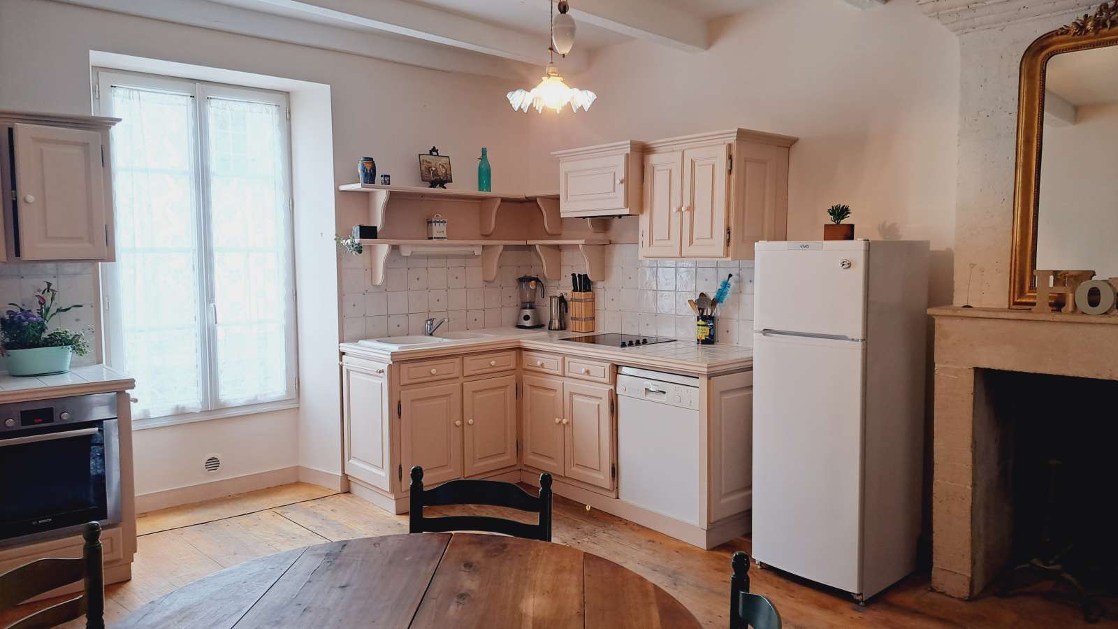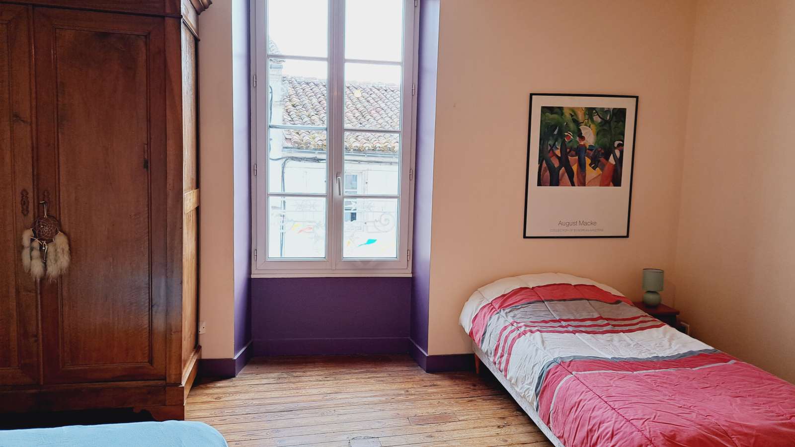 Meublé pour 5 personnes, situé au coeur du village de Villebois-Lavalette, labellisé Petites Cité de Caractère. Situé au pied des halle, proche de la boulangerie et du chateau. Appartement meublé à étage avec cuisine équipée, 2 chambres et salon. Une chambre composé d'un lit simple et d'un lit double et l'autre chambre d'un lit double. Salle de bain et WC.