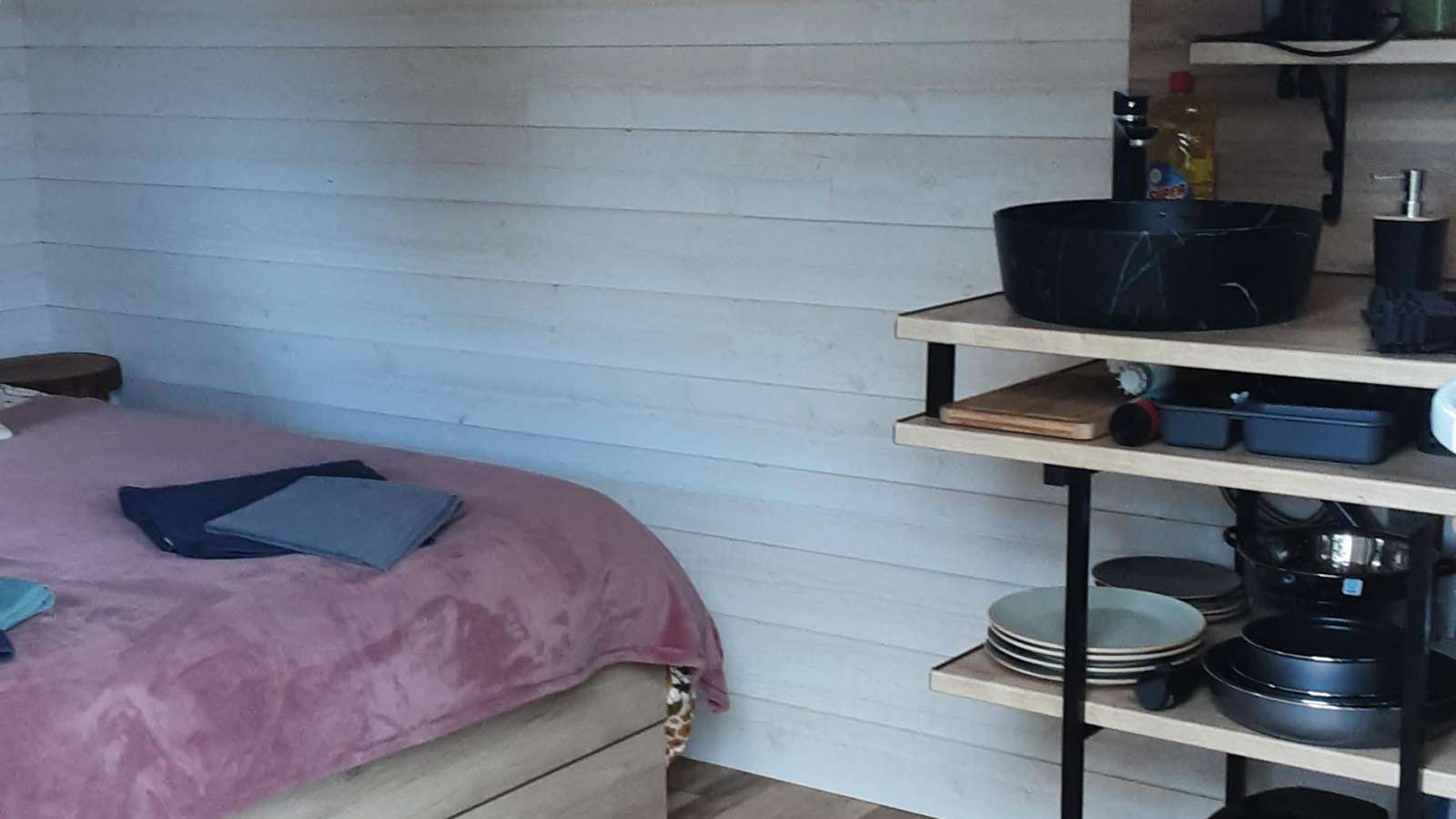 Faites le pari de laisser votre téléphone le temps d'un week-end et renouez avec la simplicité, en séjournant dans la Tiny-house du Gîte le Vallier Verdoyant. Venez profiter de la nature et de ses bienfaits, à proximité des lacs bleu de Guizengeard. Mais qu'est-ce qu'une Tiny-House ? Il s'agit d'un hébergement insolite et écologique en bois, offrant tout le confort d'une petite maison. Depuis 2022, le Gîte le Vallier Verdoyant expérimente ce concept et met à disposition des vacanciers une Tiny-House, implantée à 2 min seulement des lacs bleu de Guizengeard (site classé Natura 2000), à 20 min du circuit de la haute saintonge'. Sans superflu et déconnecté, vous pourrez passer un agréable séjour. Cette petite tiny est équipée d'un lit de 140x190, une kitchenette avec micro onde plaque gaz, frigo, cafetière et la vaisselle nécessaire Un espace avec douche et wc Une belle terrasse avec chaises longue et salon de jardin. Grand jardin partager avec une autre tiny et un mobil home Les animaux sont admis gratuitement