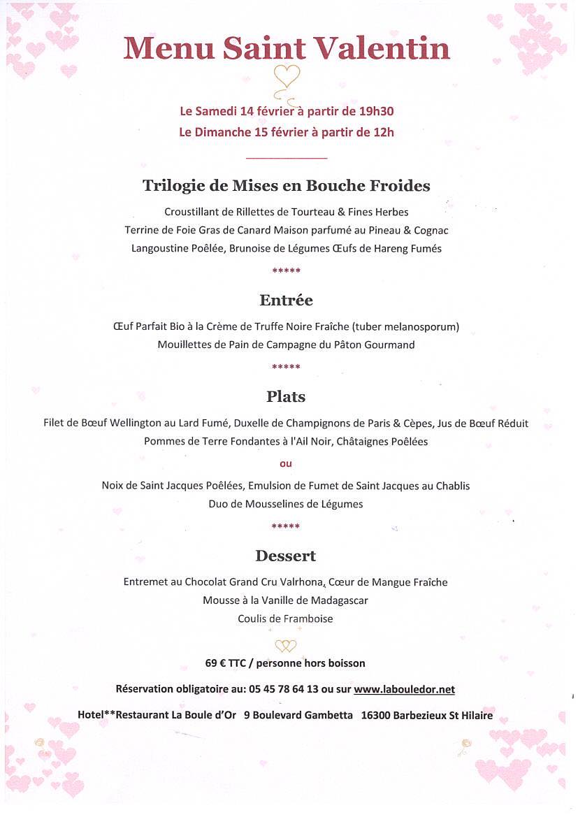 Menu de la Saint-Valentin - La Boule d'Or