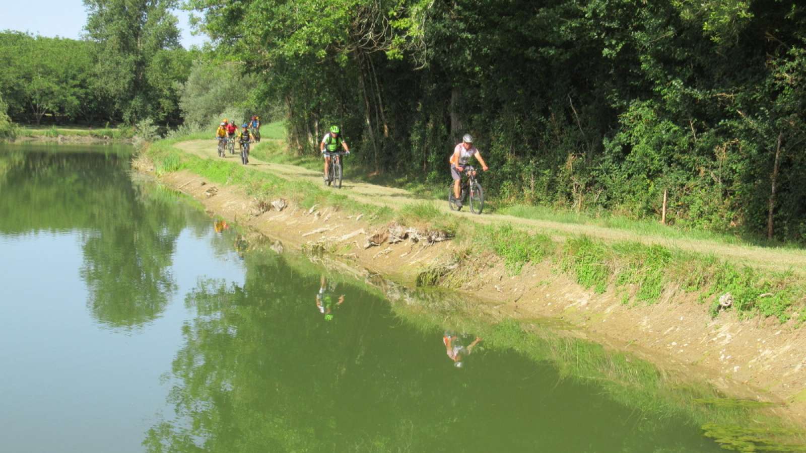 Enfilez votre plus belle tenue de cycliste et profitez d’une balade revigorante au milieu de la campagne charentaise. Vous partirez à la rencontre de sous-bois, de prairies et de cours d'eau, le tout, avec une facilité déconcertante. Rendez-vous au lieu dit Saint-Martial ! Garez votre véhicule sur le parking de la place de l’église. Vous trouverez sur place un panneau d’information, vous indiquant les points d’intérêts à visiter aux alentours, ainsi qu’un coin enherbé et une table de pique-nique pour vous restaurer. Quittez maintenant le village et prenez la direction de Bonnes au Sud-Est. Tendez l’oreille sur le trajet ! Des rouges-gorges, des coucou gris, des chardonnerets élégants et des geais des chênes seront de la partie. Ces oiseaux viendront charmer vos oreilles dès les premières lueurs de l’aube. Lorsque vous aurez contourné le bois du Roi, orientez-vous vers le Nord-Est et longez la Dronne. Vous arriverez près d’un lieu-dit "Les Champs". Tournez à gauche et regagnez le village de Saint-Martial.