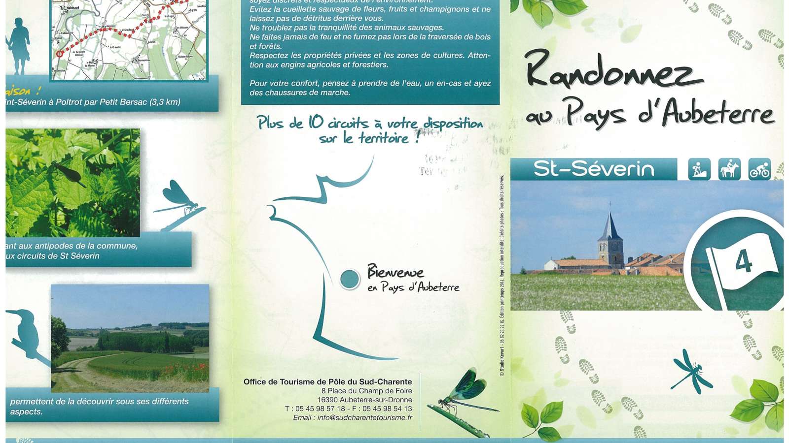 Découvrez la commune de Saint-Séverin à travers ses rivières, naturellement délimitée par les trois vallées de la Dronne et de ses affluents, l’Auzonne, la Lizonne. Démarrez votre escapade à la halte nautique de Saint-Severin (le Dexmier bas) au bord de la Dronne. Cet espace aménagé pour le piquenique, la pêche et zone d’embarquement des canoës à destination de Poltrot et Aubeterre. Le long de votre balade dans le Haut Dexmier vous découvrirez des éléments du petit patrimoine de la commune et prendrez de la hauteur où vous pourrez en profiter pour contempler de jolis points de vue. Saint-Séverin a aussi une longue tradition de moulins à papier, situés sur la Lizonne : • moulin de la Barde, quelques vestiges du XVIIe siècle. • moulin de l’Épine, moulin à papier construit en 1838, puis scierie à partir de 1987. • moulin du Petit Marchais, construit en 1837 sur un ancien moulin du XVIe siècle. Une liaison de 3,3 km est possible vers Poltrot par Petit Bersac. [Attention, le passage du gué pour atteindre la halte nautique est franchissable en voiture en saison estivale mais infranchissable en basse saison.]