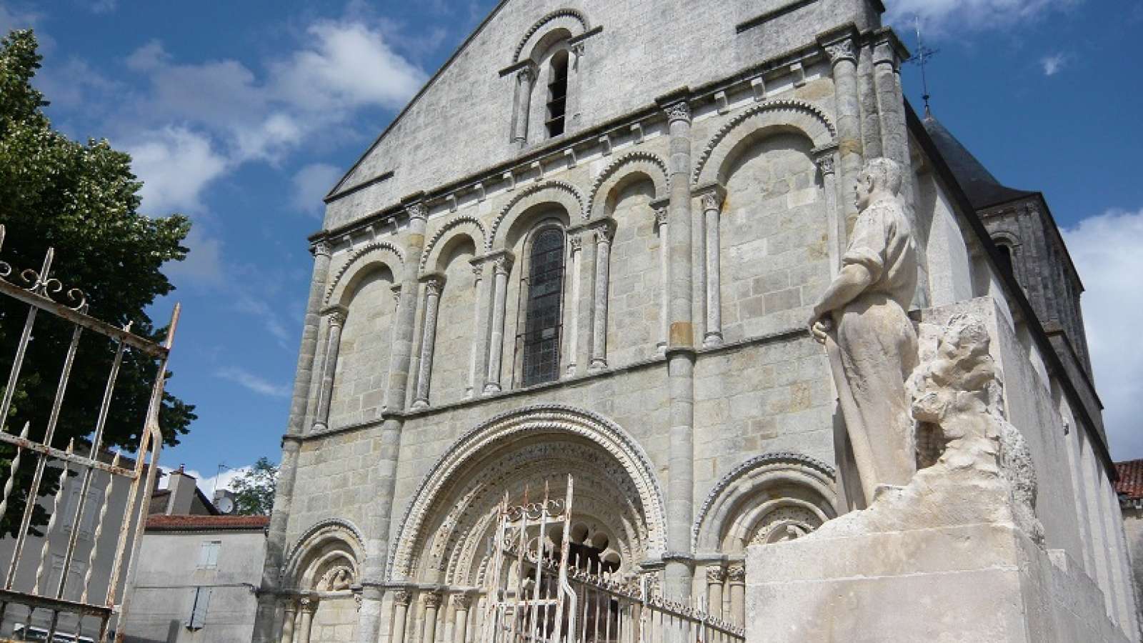 L'église Saint-Denys de Montmoreau est un bel exemple des église romanes visibles en Sud Charente. Sa façade est remarquable grâce à son portail polylobé et ses deux arcades. L'église romane se compose d'une nef couverte d'une voûte en berceau, d'un transept dont la croisée est dotée d'une coupole sur pendentifs et d'une vaste abside en hémicycle très lumineuse. Le chevet qui borde la route impressionne par ses vastes proportions et surtout par sa hauteur qui compense la dénivellation du terrain. Le clocher du XIXème siècle est l’œuvre de l'architecte Paul Abadie fils qui le fit exécuter sur le modèle de celui de l'église de Courcôme. La façade présente une composition équilibrée. Le rez-de-chaussée est percé d'un portail central à voussure polylobée flanqué de deux arcades aveugles aux tympans ornés de lions.