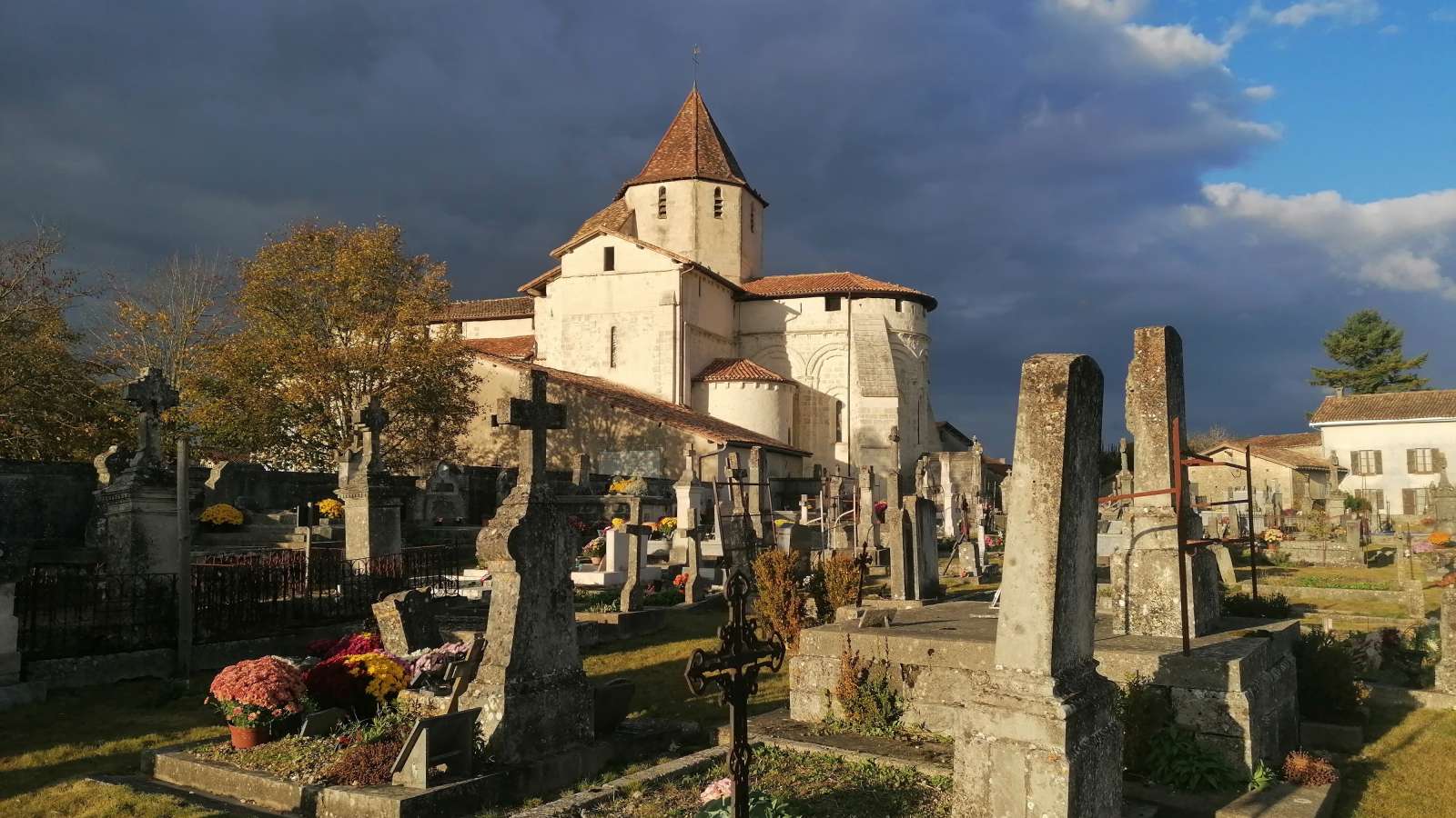 Édifice d'art roman du 12e siècle, cette église a été remaniée et fortifiée vers le 15e. Elle est connue pour abriter des peintures murales exceptionnelles, mais aussi, pour posséder deux façades. Depuis l'extérieur, de belles sculptures, récemment restaurées, rappellent l’influence artistique de l’Abbaye aux-Dames de Saintes. Une fois entré, il faut marquer le pas et observer longuement chaque illustration murale. Vous y apercevrez des armoiries, de nombreux décors floraux et végétaux, ainsi qu'une peinture de la Résurrection du Christ. Quand le soleil se lève, ses rayons lumineux, qui pénètrent à travers les vitraux, donnent un éclat étonnant à ces peintures restaurées. Visite commentée les dimanches après-midi de 15h00 à 17h00. Visite pour le weekend de la Toussaint : samedi, dimanche, lundi et mardi de 14h00 à 17h00.