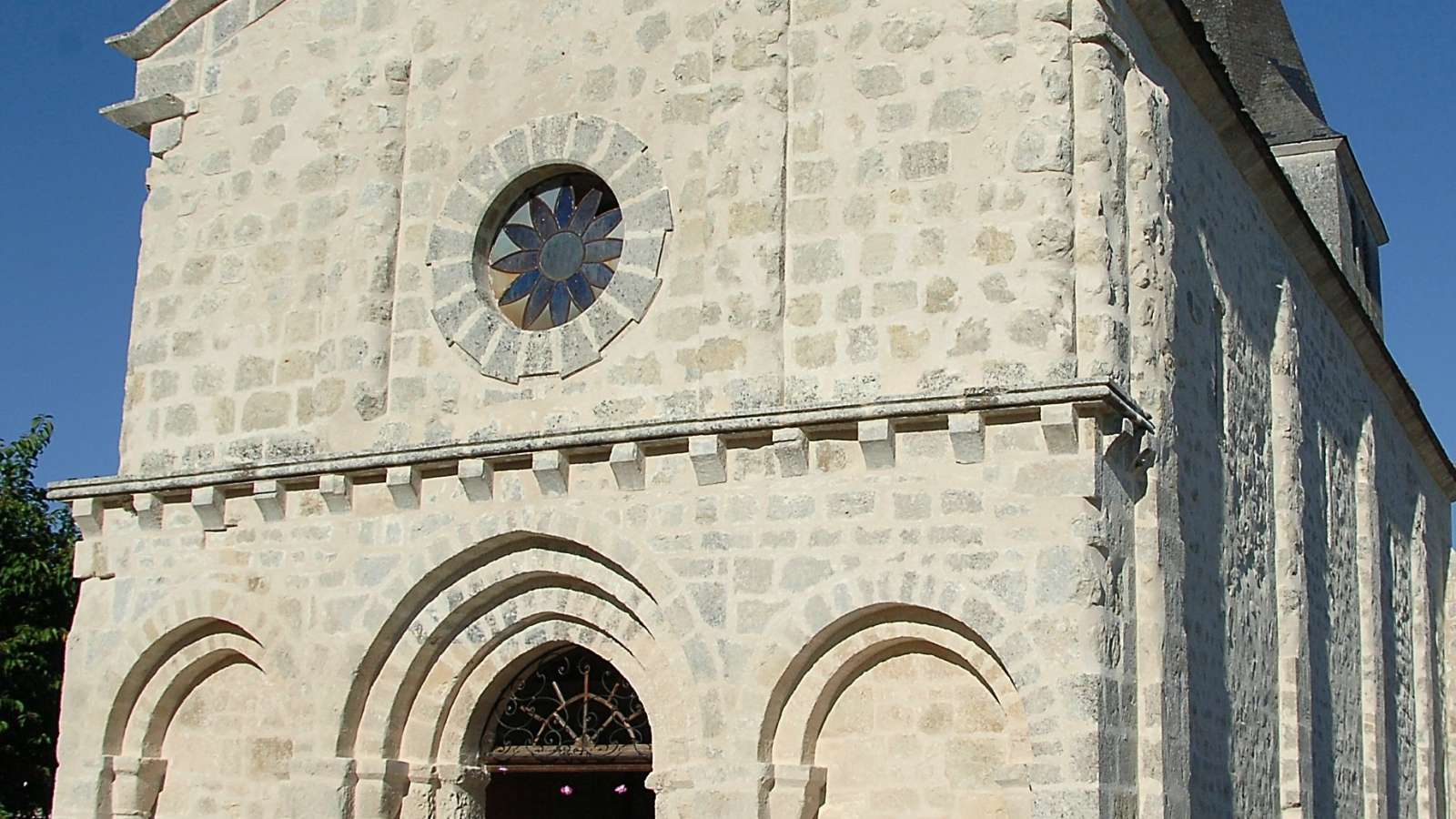 Mentionnée comme étant du XIème siècle, puis remaniée au XIIème, elle présente un portail à trois voussures accompagné de deux fausses portes, un transept couvert d'une coupole sur pendentifs et d'une abside en cul de four. Le clocher carré surmonté d'une flèche a été refait en 1854. L'église est entièrement restaurée en 2007. À voir, les vitraux qui sont des créations contemporaines.
