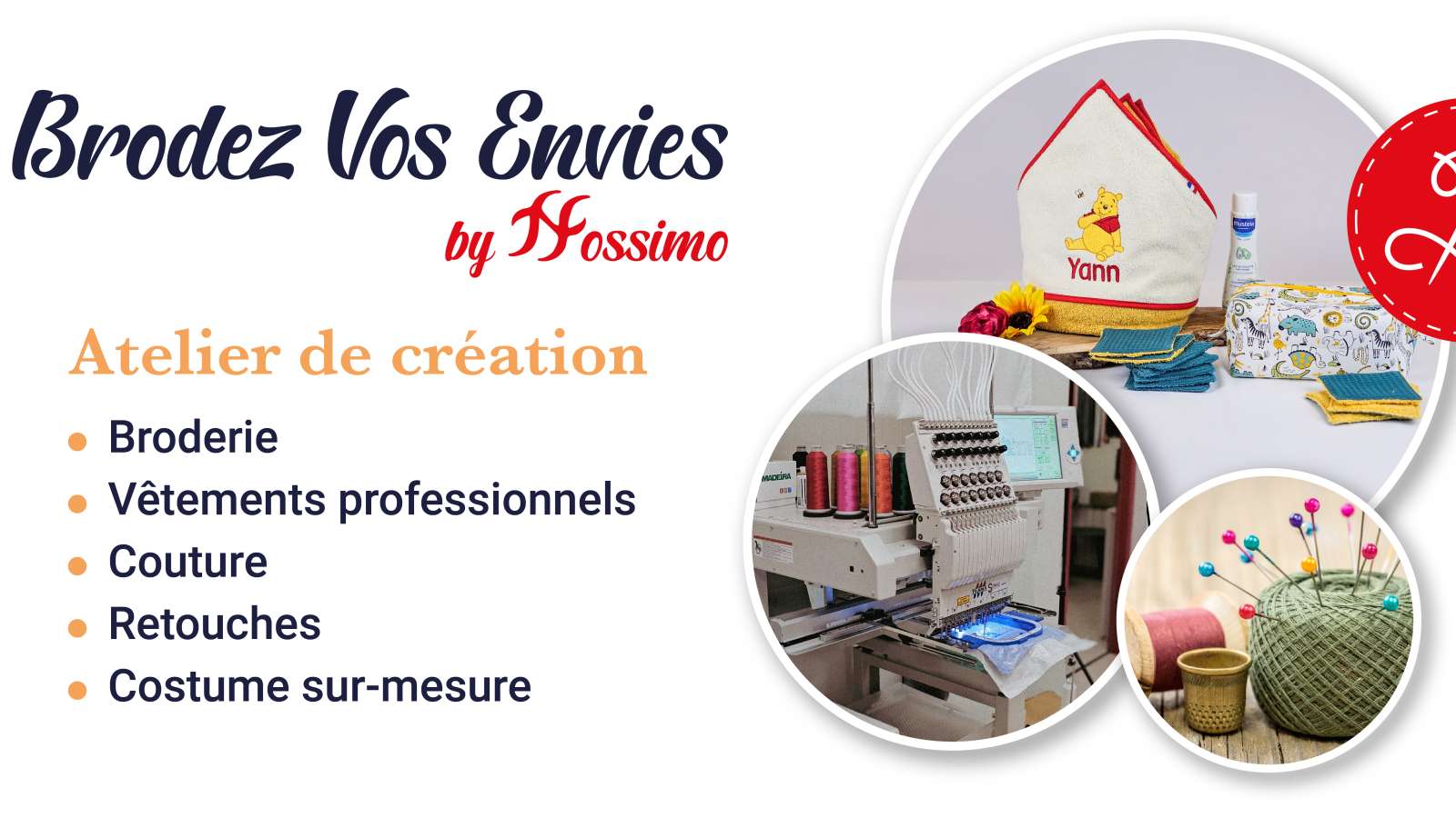 Brodez Vos Envies By Hossimo, c’est un atelier de borderie et de création, fait main, made in Charente situé au coeur du village de Saint Séverin. Retrouvez un service de costume sur mesure et de prêt à porter. Nos services : • Des créations sur-mesure. • Imaginez puis brodez. • Professionnels et particuliers, stylisez vos vêtements (logo, design etc). • Des chemises et costumes sur mesure. • Retouches et couture pour tous travaux de réparations textiles.