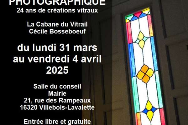 Exposition photographiques des réalisations de vitraux de la Cabane du vitrail : atelier de Cécile Bosseboeuf, artisanne d'art vitrailliste.