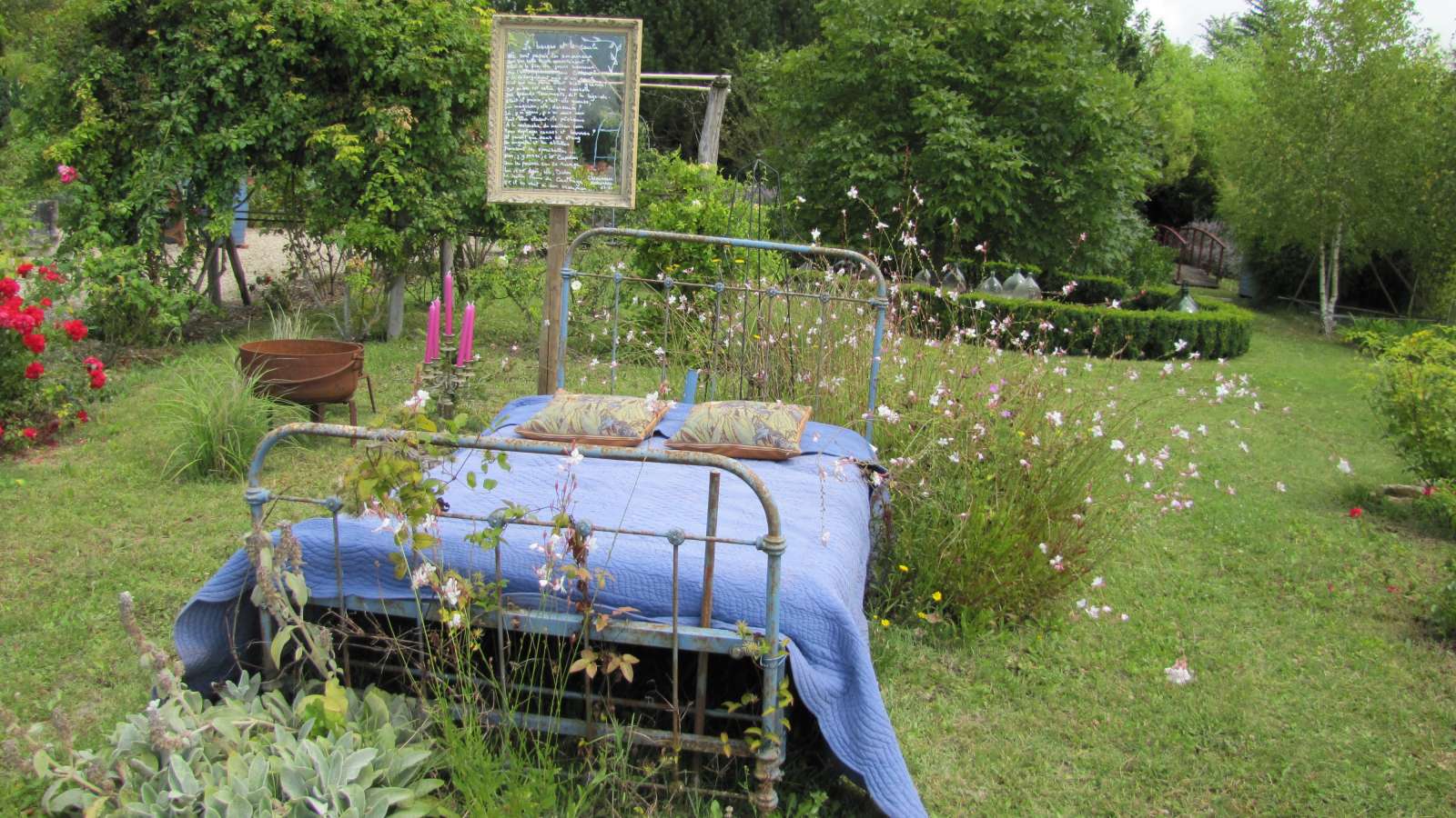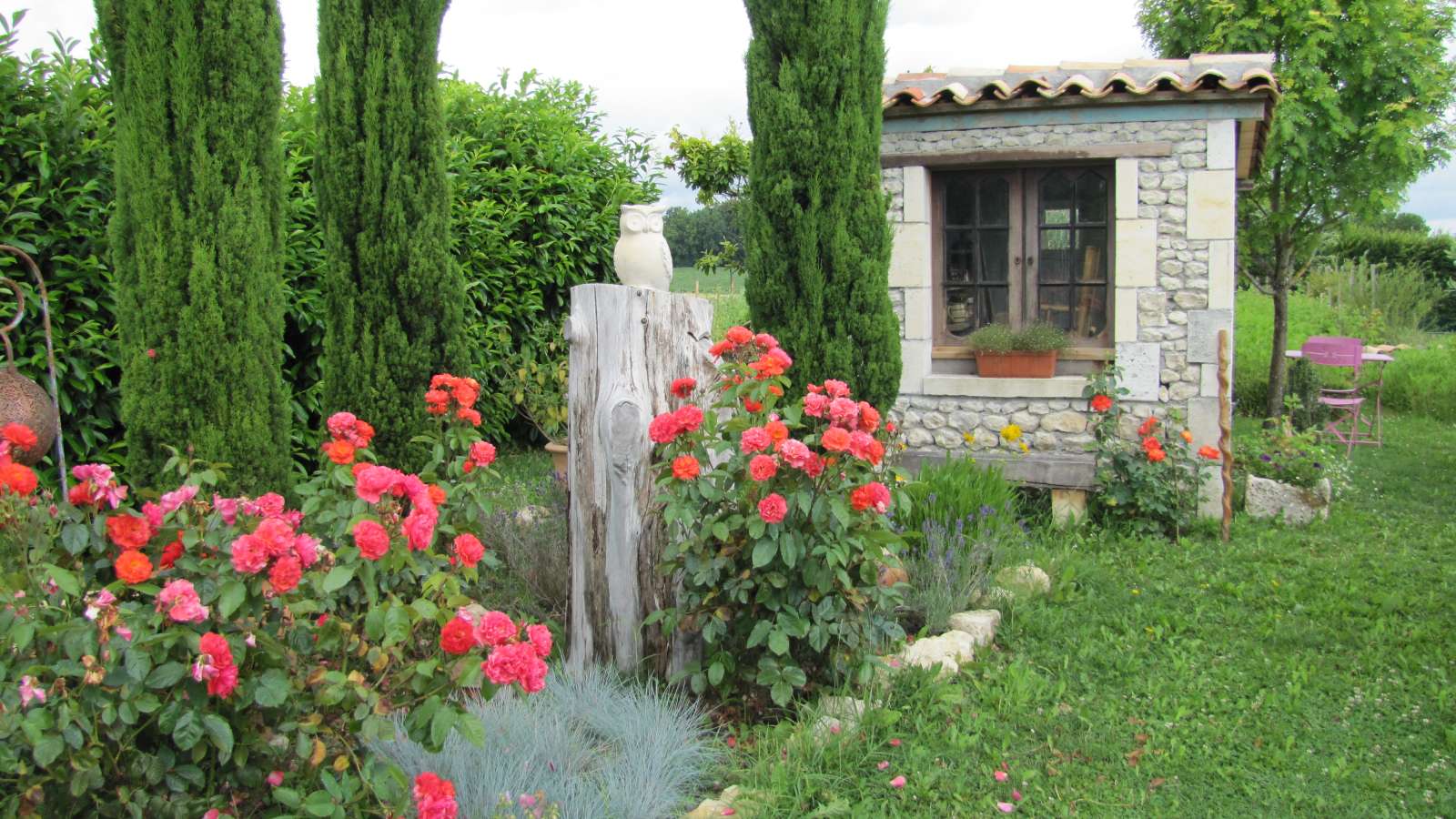 Romantique et sauvage, iris, rosiers, lavande, graminées, cyprés de Provence avec leur cabanon en pierre, coins de repos, bassin qui fait le bonheur des grenouilles et des oiseaux, pinède, poules et pigeons en liberté, vue du moulin à vent... Le jardin laisse à rêver, surprendre, méditer...