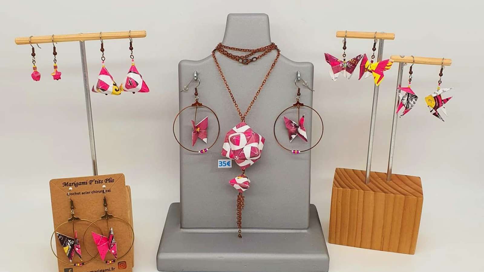 Origamiste, artisane d'Art Créatrice d'objets en origami : bijoux et décoration d'intérieur Accueil sur rendez-vous. Je suis une créatrice charentaise (terroir de la cagouille), passionnée d'origami, et depuis 2013, je plie un peu, beaucoup, passionnément, à la folie. Où trouver mes créations ? - à mon atelier à Cressac-Saint-Genis (sur rendez-vous) - sur le site, en commande personnalisée : www.marigami.fr - à l'espace SMART : pôle des Métiers d'Art au 31 rue René Goscinny à Angoulême - sur ma page Facebook - sur les marchés et salons d'artisanat d'art