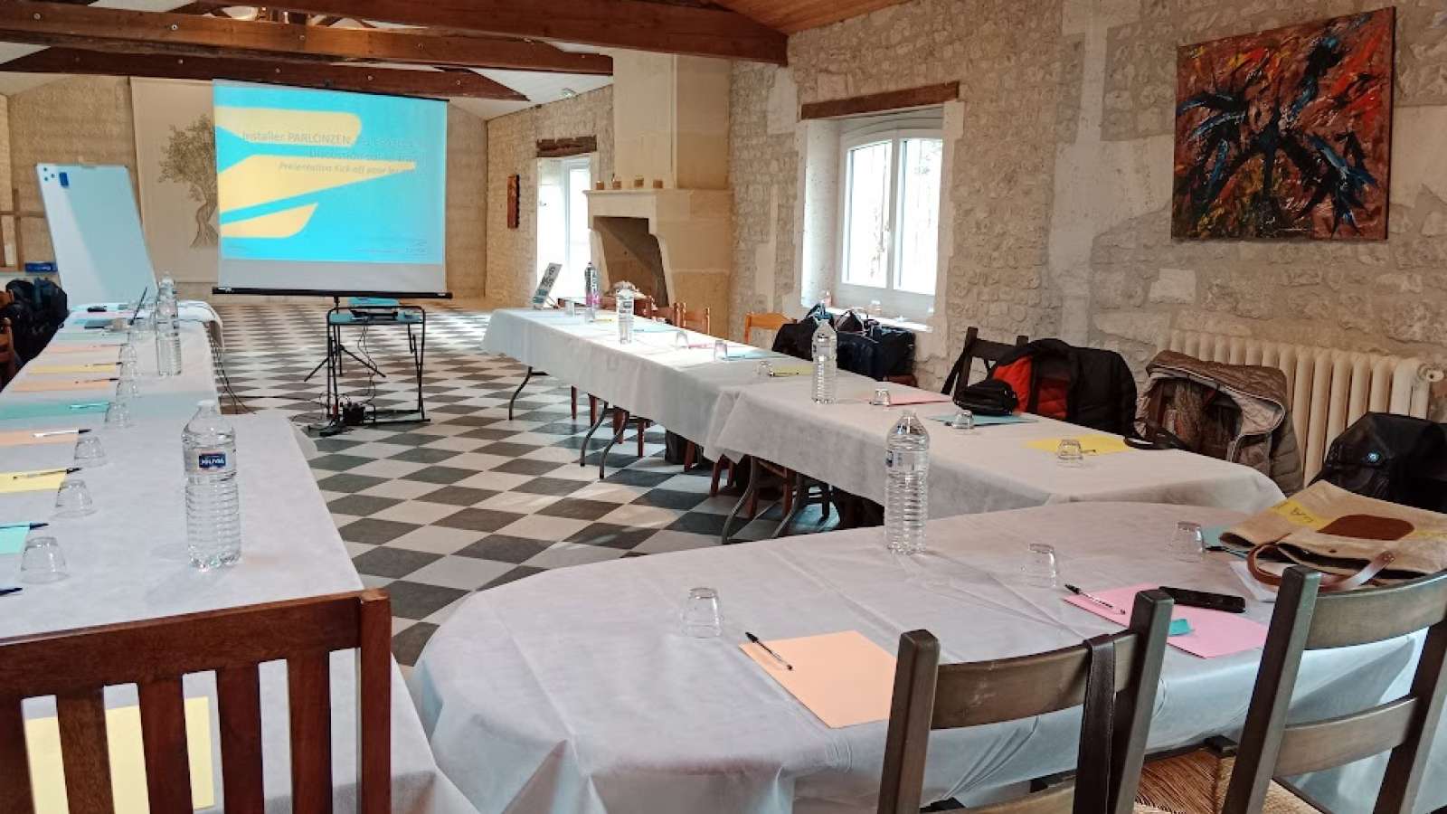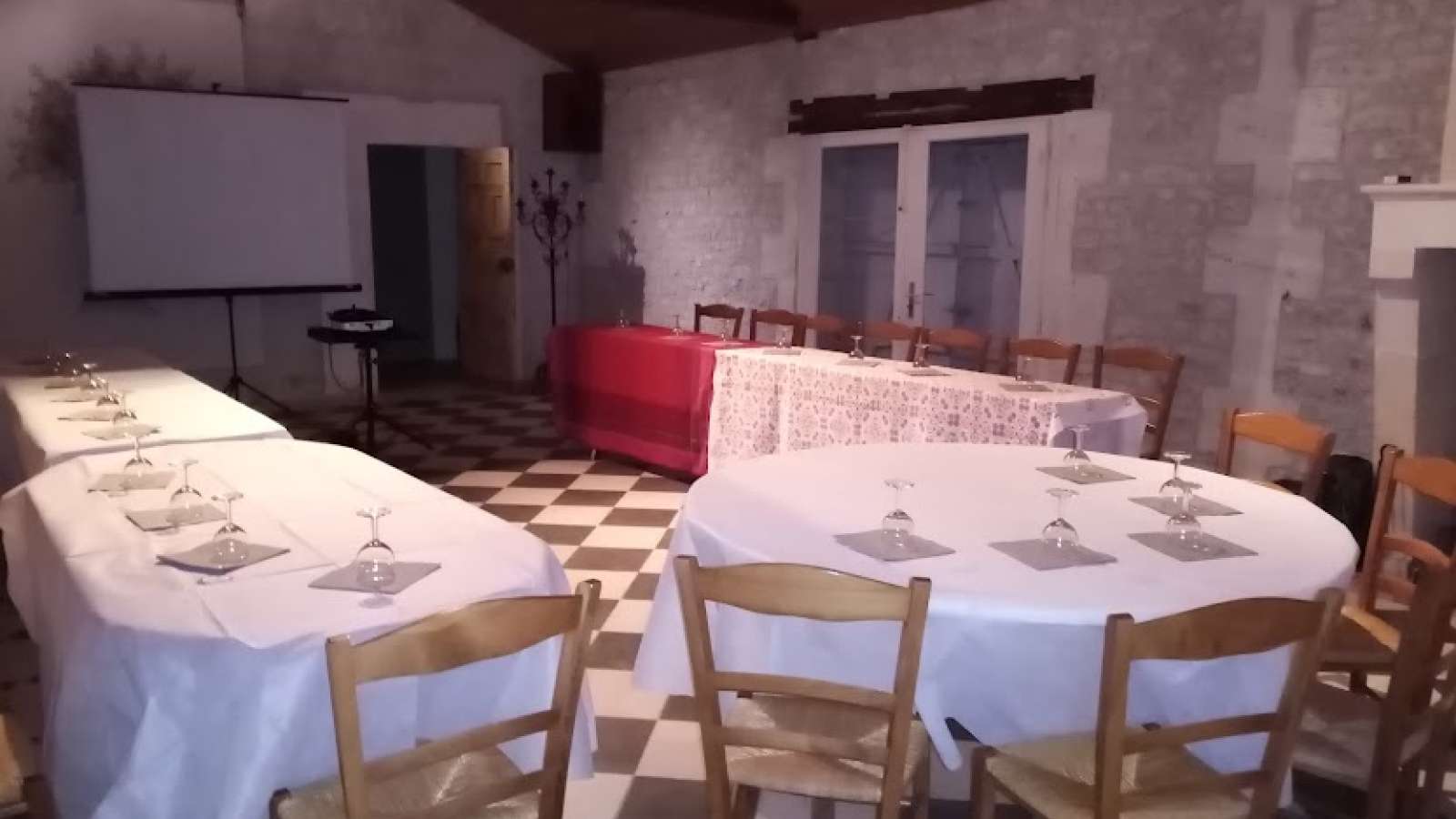Au cœur de la Grande Champagne et aux portes des grands crus de Bordeaux, venez découvrir notre cadre, idéal pour organiser vos manifestations privées (mariages, baptêmes, anniversaires, cousinades) ou professionnelles (séminaires, réunions, formations). Qu'elles soient festives ou studieuses, vos rencontres ou réunions d'entreprise trouveront au Domaine de Pladuc un accueil chaleureux et agréable. Situé entre Cognac et Barbezieux à quelques kilomètres d'Archiac, le Domaine de Pladuc comprend un ancien chai, longue et belle salle de 140 m², aux murs de pierre et charpente apparente pouvant accueillir jusqu'à 80 personnes autour d'une table ou 120 personnes debout en buffet ou cocktail, lors de séminaire, mariage, anniversaire, lunch... La salle est équipée de tables et chaises et comprend deux toilettes dont un pour personnes à mobilité réduite. Un office de cuisine entièrement rénové et équipé de matériels professionnels est à disposition de votre traiteur. Il est également possible de réserver l'ensemble du domaine, salle de réception et chambres d'hôtes, pour votre événement. Salle chauffée (radiateurs et cheminée) pour permettre d'accueillir vos évènements en toutes saisons.