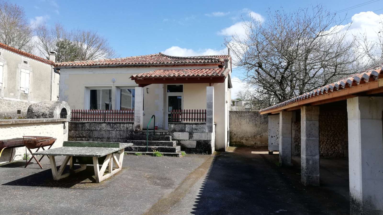 Au coeur du bourg de Juillaguet, commune historique de Boisné-La Tude, cette salle des fêtes au charme désuet vous accueillera pour toutes vos festivités. Elle dispose de tables, chaises et vaisselle pour environ 50 personnes, 1 grande chambre froide et 1 congélateur. 1 petite gazinière vous permettra de faire réchauffer mais pas de faire une grande cuisine. Devant, une petite cour vous permettra de prendre l'apéritif à l'extérieur, voire même de faire une partie de ping pong. Un préau dont la toiture vient d'être refaite vous abritera aussi bien du soleil que des éventuelles intempéries. Un grand parking se situe à proximité.