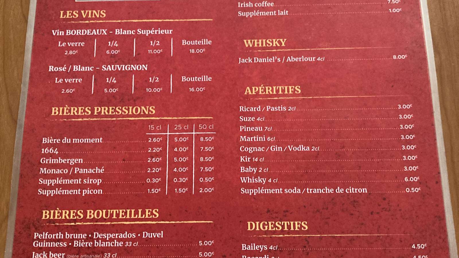 Tarifs & moyens de paiement
