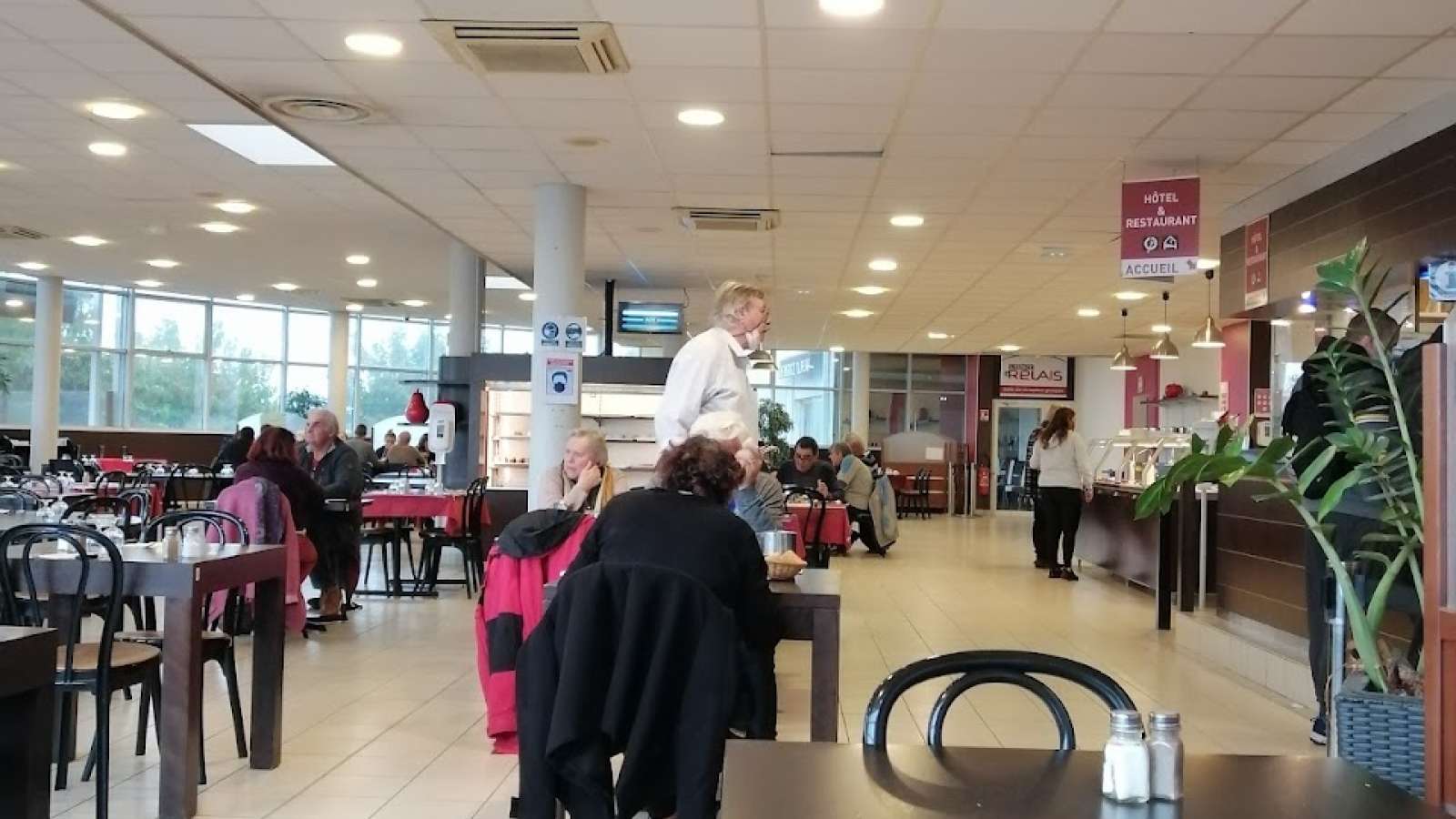 Grande salle avec buffets. Cuisine à base de produits de qualité, plat du jour fait maison. Possibilité d’accueil de groupes de bus. Petit-déjeuner pour groupes. Restaurant fermé les 25/12 et 1er janvier et 15/08 Attention, le parking poids lourd est payant si la hauteur du camion dépasse 2.50 mètres.