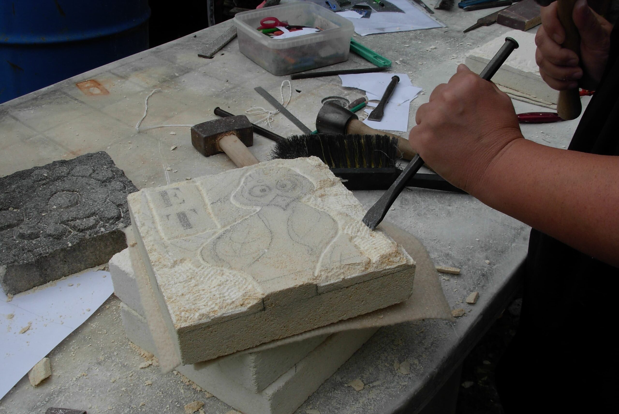 ✍️  Pierre Carcauzon, artisan métier d’art en sculpture sur pierre. Pierre vous propose des stages d’initiation à la taille de pierre. Vous réaliserez un bas-relief. A partir de 7 ans.